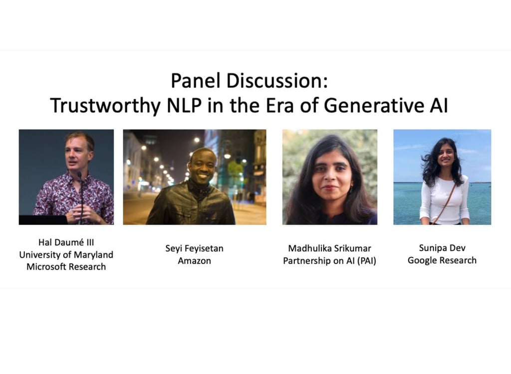 Trustworthy NLP in the era of Generative AI; with Hal Daume (Microsoft Research); Sunipa Dev (Google) and Oluwaseyi Feyi (Amazon Research)